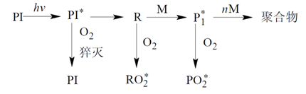 1.   氧氣與活化的引發(fā)劑反應,生成配合物,從而引起光引發(fā)劑猝滅;