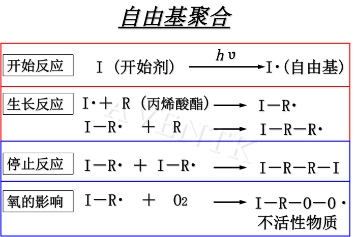 目前大部分的UV膠水還是丙烯酸酯膠黏劑,其固化機理是自由基聚合。丙烯酸酯是膠黏劑產(chǎn)品的主體,它的性能基本決定了固化后材料的主要性能。因此,選擇合適的丙烯酸酯無(wú)疑是光固化產(chǎn)品配方設計的重要環(huán)節。