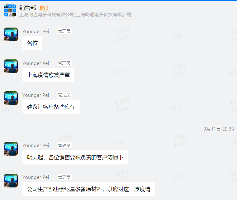 早在3月上旬,AVNETK領(lǐng)導團隊已經(jīng)初步預見(jiàn)到上??赡軙?huì )受到新冠疫情影響,公司未雨綢繆,做了許多預見(jiàn)性工作。對外銷(xiāo)售團隊跟進(jìn)客戶(hù)項目需求,建議客戶(hù)根據自身需求做一些備貨,同時(shí)公司內部做好常規產(chǎn)品的備庫工作。對內生產(chǎn)團隊對產(chǎn)品原料點(diǎn)檢備貨,備足庫存。